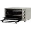Навесной способ открытия преобладает у настольных моделей: петли в этом случае располагаются слева или справа, а дверца открывается за ручку, расположенную с другой стороны, — так же, как у микроволновки или холодильника. Оригинальна и безопасна выдвижная дверца у электрических духовок — к ней с внутренней стороны прикрепляются все комплектующие, включая противни и направляющие. При выдвижении все они также извлекаются наружу, понижая тем самым риск ожога. Недостаток этого способа — постоянное изменение температуры при каждом открытии дверцы.