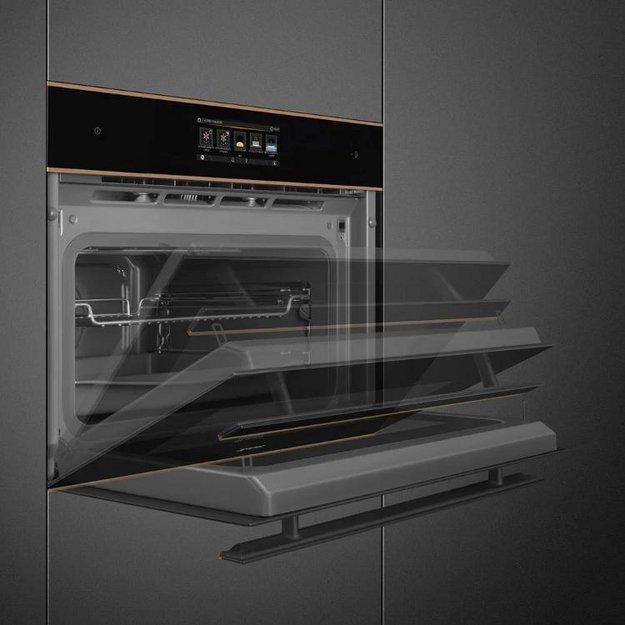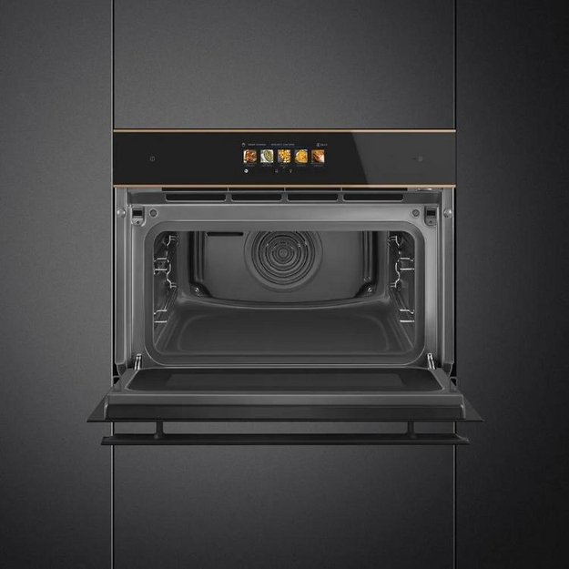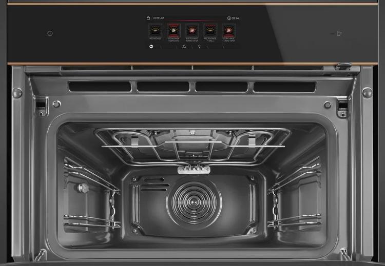 Количество режимов работы в духовом шкафу Смег: 26. В число доступных программ входят: классический нагрев, нижний нагрев, конвекция, приготовление с помощью микроволн, дополнительное использование пара, гриль для создания хрустящей корочки, пицца, и другие. Помимо основных программ воспользуйтесь специальными возможностями этого прибора: режимом Sous-Vide для приготовления нежных, диетических блюд в вакуумной упаковке; вентилятором, совмещенным с грилем; и другими.