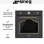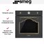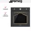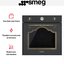 Духовой шкаф Smeg SF700AO — встраиваемая независимая модель шириной 60 см из коллекции Cortina в стиле ретро. Это духовка с фасадом цвета антрацит, оригинальной ручкой и поворотными переключателями из латуни, стильными ретро-часами, а также фигурным стеклом в дверце. Объем 70 литров позволяет размещать противни на 5 уровнях. 6 режимов приготовления включают верхний и нижний нагрев, гриль, конвекцию — распределение горячего воздуха при помощи вентилятора, — а также сочетания этих способов нагрева. Изнутри камера покрыта специальной эмалью EverClean, облегчающей очистку. Внутреннее стекло в дверце представляет собой сплошную поверхность, за которой так же легко ухаживать. Всего в дверце имеется три стекла, так что она остается холодной, когда духовка включена.