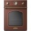 Цветные фасады духовок можно найти у таких производителей, как итальянские Smeg, ILVE, Restart, Bertazzoni, немецкие Kuppersberg и Kaiser. Эти фирмы предлагают духовки с фасадами красного, зеленого, синего, коричневого цветов с богатой и оригинальной фурнитурой, а также интересные варианты в цвете меди и платины.
