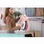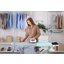 Резервуар для воды снабжен ручкой, так что его можно снимать и доливать воду в процессе работы. Специальный фильтр с гранулами защищает систему от образования накипи, в том числе и при использовании водопроводной воды. Доску можно складывать одним движением, перемещать с помощью системы колесиков и хранить в вертикальном положении. Шесть уровней высоты позволяют отрегулировать ее наиболее удобно.