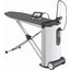 Глажение с паром в гладильных системах задействует все три их основные составляющие: паровой утюг, парогенератор и активную гладильную доску. Эта система позволяет генерировать интенсивные потоки пара, способные справиться с разглаживанием самых неподатливых и плотных тканей, а также многослойных изделий. Система регулировки поможет бережно прогладить тонкие и деликатные ткани. Благодаря глажению с паром можно использовать режим вертикального отпаривания, когда изделия будут обрабатываться без контакта с ними. Доска в системах с паром имеет основание из термостойкого металла, в котором проделаны отверстия: через эти отверстия проходит пар и горячий воздух.