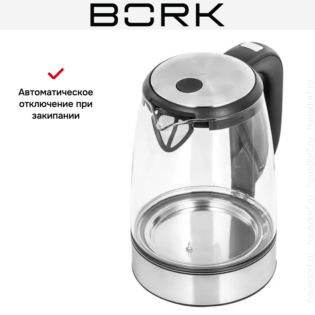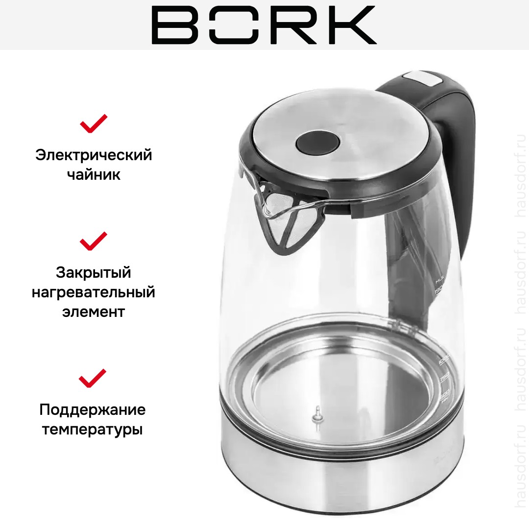 Функция поддержания заданной температуры Keep Warm для электрических чайников Bork позволяет сохранять температуру воды с точностью до градуса в течение 60 минут. Это поможет использовать приготовленный напиток длительное время без повторного кипячения в оптимальном диапазоне для заваривания чая.