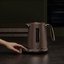 Чайник Bork выполнен из прочной нержавеющей стали, необычный оттенок грейдж освежает интерьер. На поворотной базе расположены кнопки управления — своя под каждый температурный режим. Помимо температурных подсказок они снабжены пояснениями, какой режим для заваривания какого сорта чая подходит. Функция поддержания тепла позволяет сохранить необходимый нагрев до 20 минут после выключения.