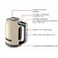 - Умный индикатор температуры. Покажет актуальную температуру воды на дисплее, даже когда чайник не находится на своем основании.