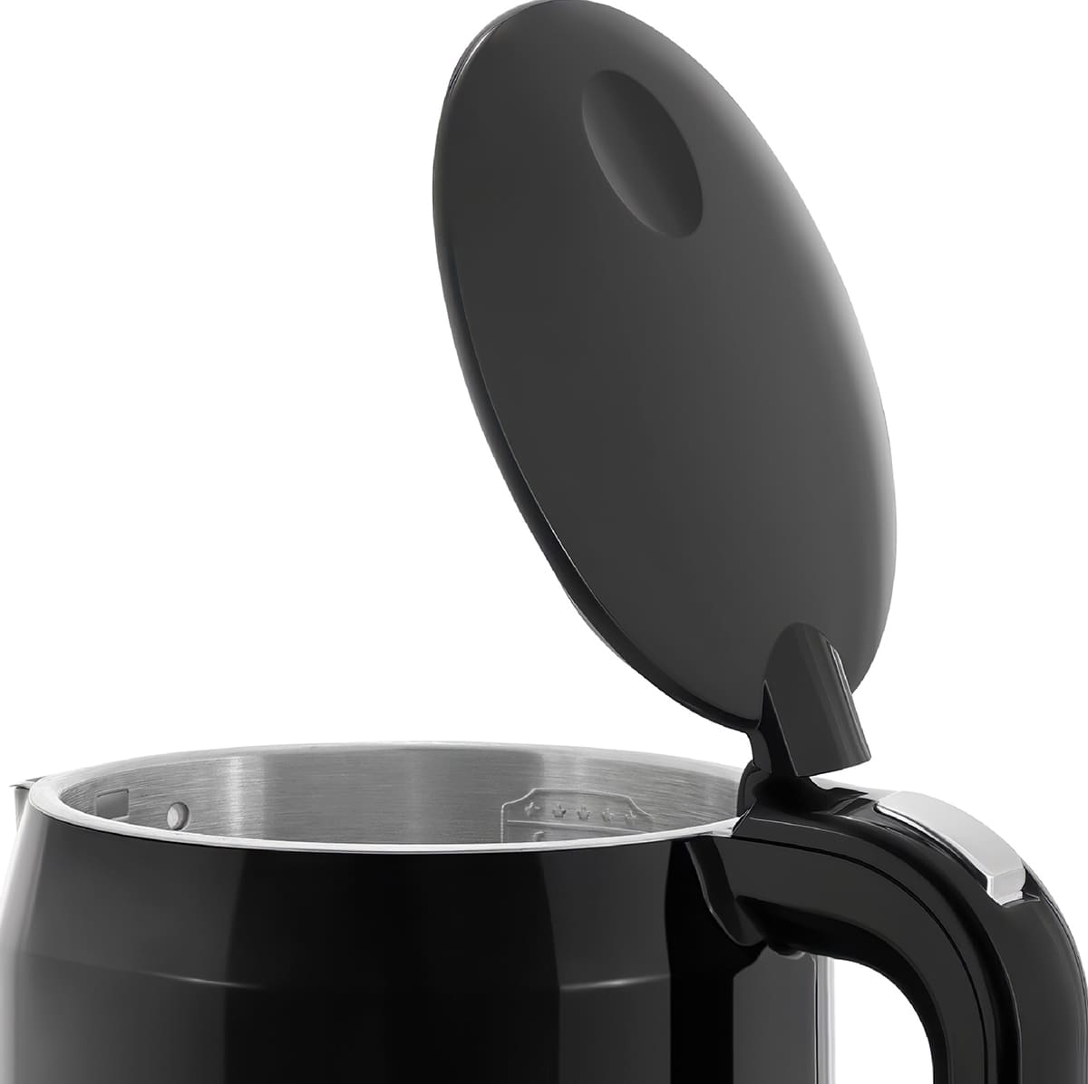 Особое внимание уделено безопасности: чайник автоматически отключается после закипания, а система защиты предотвращает включение при отсутствии воды. Удобная ручка из термостойкого материала остаётся прохладной во время работы, обеспечивая комфорт при наливании. Крышка открывается одной рукой, а широкий горлышко упрощает наполнение и очистку.