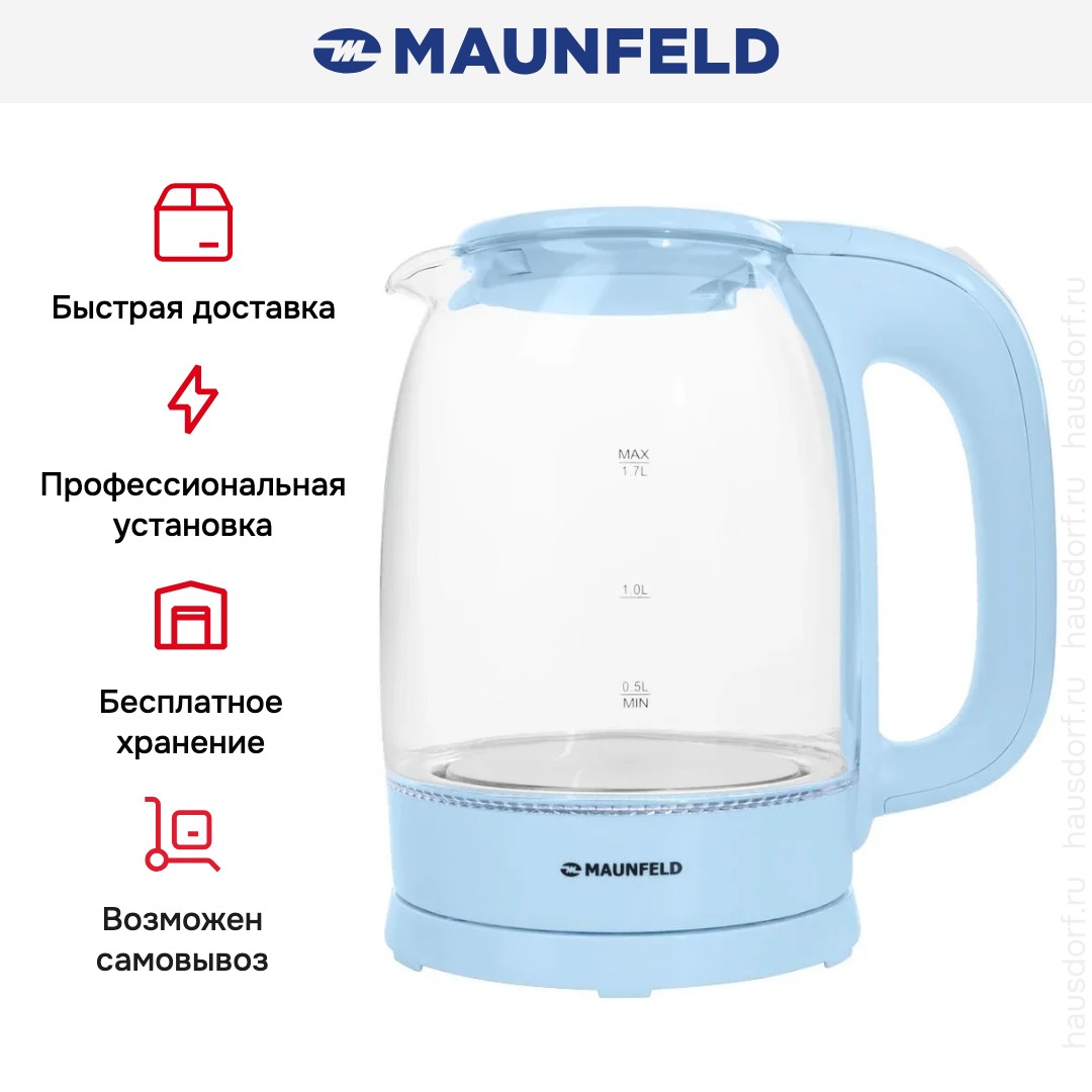 Материал корпуса: пластик/стекло. Материал подставки: пластик. Объем (л): 1.7. Цвет: голубой. Мощность (Вт): 2200. Управление: механическое.