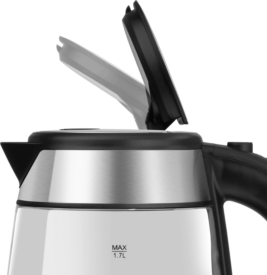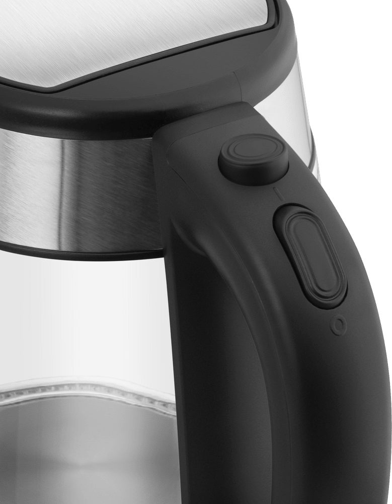 Материал корпуса: пластик/стекло. Материал подставки: пластик. Объем (л): 1.7. Цвет: черный. Мощность (Вт): 2200. Управление: механическое.