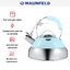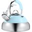 Оригинальный чайник для плиты, без электрического подключения, объёмом 3 литра с полезным объёмом 2 литра выполнен из нержавеющей стали марки 18/8 и покрыт прочной эмалью нежно-голубого цвета. Дизайн корпуса в стиле ретро с гладкими линиями и классическими очертаниями делает прибор выразительным элементом кухонного интерьера и гармонично впишется в классические и деревенские стили интерьера. Индукционное капсулированное дно обеспечивает совместимость с варочными панелями, работающими по принципу электромагнитной индукции, оно гарантирует равномерное распределение тепла по всей площади.