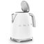 Электрический чайник Smeg KLF03WHMEU весом 1,6 кг и высотой 25 см принадлежит к коллекции в стиле 50-х годов 20 века. Корпус и крышка матового белого цвета изготовлены из нержавеющей стали, а носик с фильтром — из полированной стали. Пластиковая ручка надежно предохраняет пользователей от ожогов. Объем рассчитан на приготовление 7 чашек чая — такая модель подойдет для большой семьи. Мощность чайника Смег KLF03WHMEU составляет 2400 Вт и гарантирует минимальное время закипания.