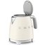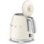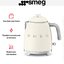 Чайник Smeg KLF05CREU — модель для небольшой семьи, дачи или офиса. Благодаря весу всего 1 кг и высоте 20 см его можно брать с собой в поездку. Модель производства известной итальянской фирмы относится к коллекции в стиле ретро, имитирующей технику 50-х годов 20 века. Округлая форма и глянцевый кремовый цвет корпуса, блестящее хромированное основание и ручка, носик из полированной нержавеющей стали создают единый гармоничный образ. Сам корпус изготавливается из особого пластика, устойчивого к повышению температуры, а внутренняя колба — из нержавеющей стали.