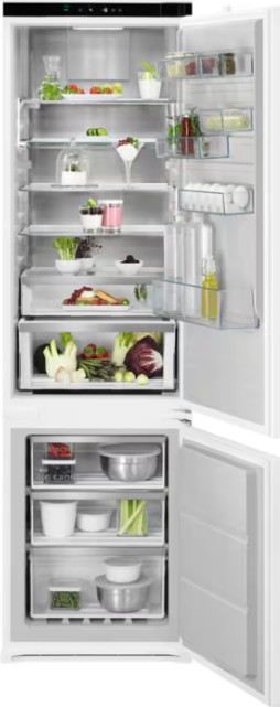 Встраиваемый холодильник AEG NSC8M191DS прекрасно впишется в современную кухню и станет незаметной частью мебельного ансамбля. Его компактные габариты 189,55454,9 см рассчитаны на монтаж в нишу 189,45655—56 см. Передняя панель предназначена под навес вашего фасада, что позволяет сохранить стиль кухни и скрыть бытовую технику.