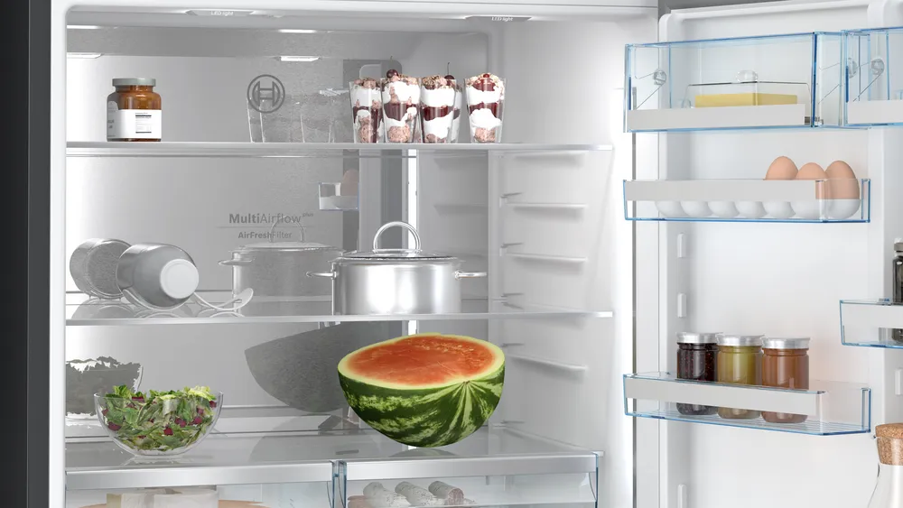 Зона свежести VitaFresh в холодильниках Bosch служит для увеличения срока хранения продуктов — от овощей и фруктов до свежего мяса и рыбы — без их заморозки. В ней поддерживается оптимальная температура около 0°C, а влажность в разных отделениях может регулироваться в зависимости от типа продуктов.