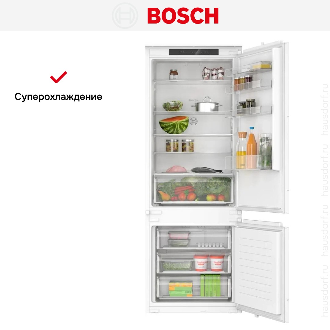 Зона свежести VitaFresh в холодильниках Bosch служит для увеличения срока хранения продуктов — от овощей и фруктов до свежего мяса и рыбы — без их заморозки. В ней поддерживается оптимальная температура около 0°C, а влажность в разных отделениях может регулироваться в зависимости от типа продуктов.