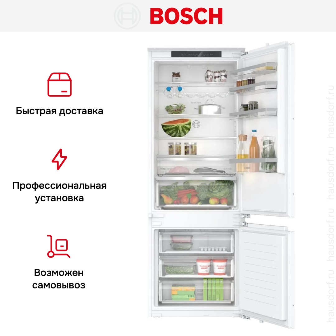 Встраиваемый холодильник Bosch KBN96VFE0 создан для тех, кто ценит продуманные бытовые решения. Он предназначен для установки под декоративную панель, поэтому корпус скрывается за фасадом кухни и не привлекает внимания. Плоские шарниры и система door sliding гарантируют ровную фронтальную плоскость и удобство при открывании даже в условиях плотной расстановки мебели. Возможность перевешивания двери так, чтобы она открывалась в другую сторону, позволяет адаптировать прибор под планировку.