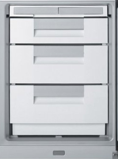 В морозильной камере с распашными дверцами также устанавливаются стеклянные полки, на которых размещается несколько пластиковых контейнеров. В большинстве моделей эти контейнеры достаточно хорошо закрываются, чтобы предотвратить размораживание. Если морозильная камера представляет собой несколько выдвижных ящиков, стеклянные полки в ней отсутствуют.