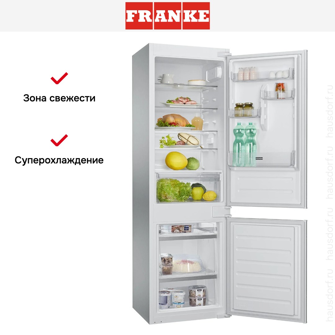 Встраиваемый холодильник Franke FCB 320 S NE E — интеллектуальное сочетание практичности, надёжности и эстетики, созданное для безупречной интеграции в современный кухонный интерьер. Благодаря двум независимым отсекам — холодильной камере сверху и морозильной снизу — устройство обеспечивает раздельное хранение продуктов с учётом их температурных требований, сохраняя свежесть овощей, аромат сыров и качество замороженных заготовок.