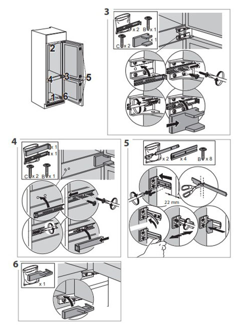 Встраиваемый прибор проще разместить в комнате, даже если общий метраж не такой уж большой. Вы можете спрятать его за декоративной панелью от мебельного фасада — советуем заранее определить нишу и заказывать панели исходя из типа крепления к двери. Способ монтажа в данной модели: скользящее крепление двери (система door sliding) Вы можете поменять направление открывания двери, так как упор переставляемый и ее можно перевесить на другую сторону. Такая функция открывает больше возможностей для установки. Холодильник с морозильником обладает всеми опциями, которые чаще всего ищут и выбирают покупатели. Стандартная конфигурация — универсальный вариант для любой квартиры. Количество камер: 2.