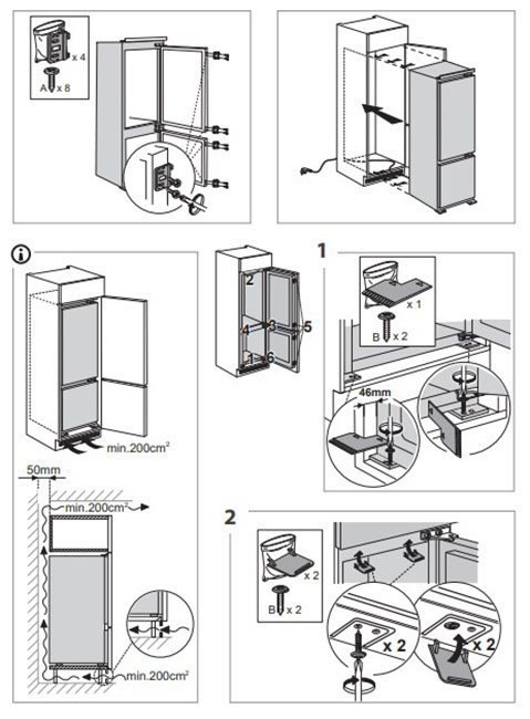 При всем сходстве с обычными отдельностоящими холодильниками частично встраиваемые модели имеют свои конструктивные особенности. Они связаны прежде всего с тем, что при встраивании необходимо обеспечить вентиляцию задней и боковых стенок, а также снизить уровень шума и вибраций. Как правило, проблема решается при помощи специальной системы вентиляции, когда вентиляционные решетки располагаются в нижней части корпуса холодильника.