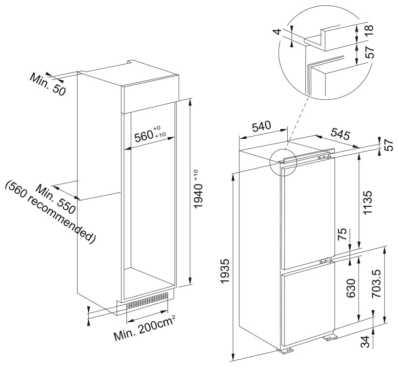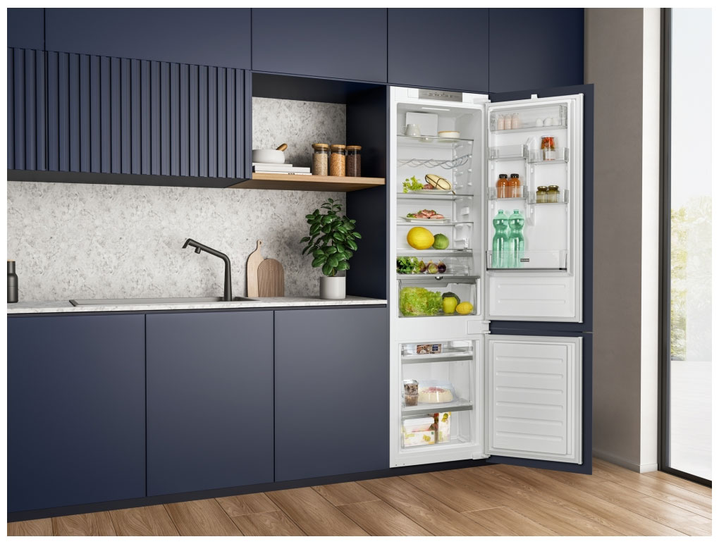 Система ручной разморозки в обеих камерах упрощает обслуживание и способствует долговечности компрессора. Корпус спроектирован специально для встраиваемой техники: вентиляционные зазоры и теплоизоляция оптимизированы для работы внутри закрытого модуля, а внешняя панель легко маскируется под дверцу шкафа, сохраняя единый стиль интерьера.