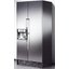 Гораздо чаще встречаются холодильники с фасадами, изготовленными из стали — прочной, устойчивой к механическим и температурным воздействиям, имеющей долгий срок эксплуатации. Кроме обычной стали, для изготовления фасадов используют нержавеющую сталь. В некоторых случаях фасад окрашивают или наносят на него рисунок.