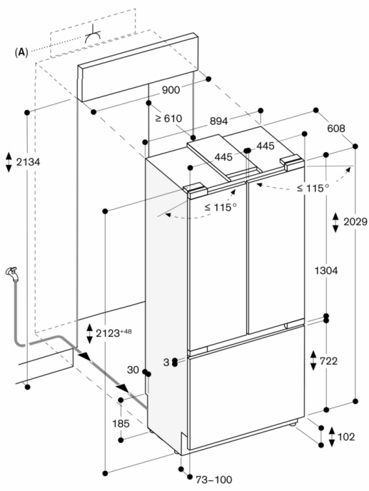 - Габариты ниши для встраивания (ВхШхГ): 213.4х91.4х61 см
