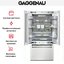 Внушительный агрегат высотой 212,5 см, шириной 90,8 см, глубиной 61 см подходит для просторной кухни. Внутреннее наполнение и отделка выполнены из нержавеющей стали с элементами из алюминия темного оттенка, дверные полки — из цельного алюминия. В обоих отделениях применяется технология No Frost, препятствующая образованию инея и льда на стенках. В холодильнике Гаггенау предусмотрены две полки из ударопрочного стекла: одна из них моторизованная с регулировкой по высоте, другая разделяется на две части, которые можно использовать по отдельности. Зона свежести включает два выдвижных контейнера — сухой для хранения мяса, рыбы и птицы, влажный для овощей и фруктов. Морозилка с аккумуляторами холода разделена на два ящика с прозрачным фронтом для удобства хранения, при отключении электричества она сохраняет продукты автономно в течение суток.
