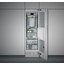 Морозильник Gaggenau встраивается в мебель, открывается с помощью ручки или автоматически. На двери расположен ледогенератор с постоянной подачей воды, режимы работы: лед, крошка и охлажденная вода. В камере установлены полки из закаленного стекла, две из них можно переставить по высоте. Цвет — нержавеющая сталь и темный антрацит.