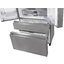 Холодильники с так называемой французской дверью или French Door также имеют распашные двери, но за ними находится не две, а одна камера. Эти двери занимают не всю высоту холодильника, а только ее часть. В нижней части подобных холодильников могут находиться либо еще две распашные двери, либо выдвижные морозильные ящики.