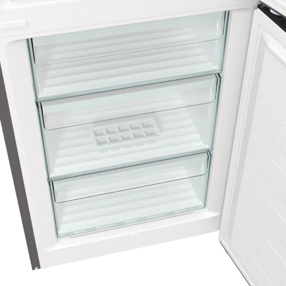 Внутреннее пространство общей емкостью 300 литров организовано так, чтобы упростить ежедневные задачи хранения. Четыре стеклянные полки выдерживают нагрузки и легко чистятся, а три полки на дверце помогают распределить напитки и соусы. Для овощей и фруктов предусмотрен большой ящик и два дополнительных лотка, что сохраняет порядок и продлевает свежесть продукции. Место для замороженных продуктов сформировано тремя отделениями снизу, что повышает удобство — вы достаете чаще используемые продукты с комфортом, не нагибаясь за тяжёлыми коробками.