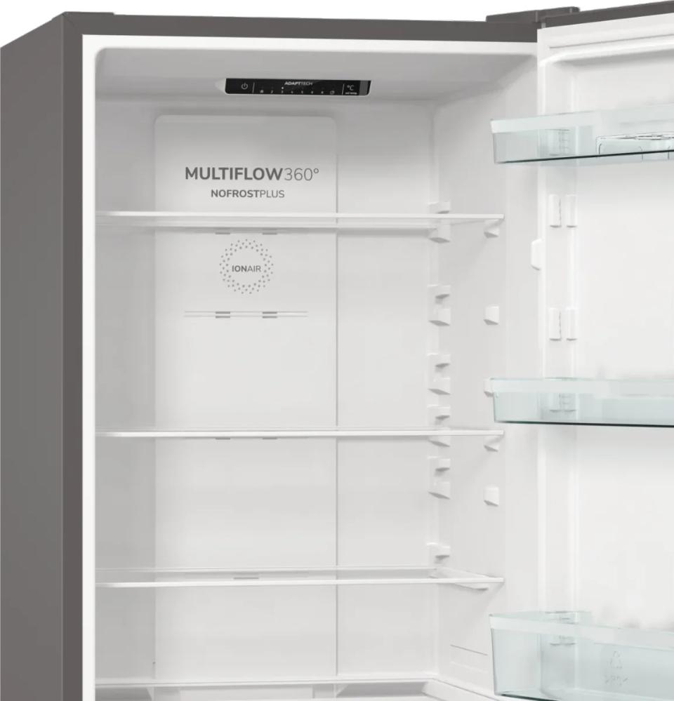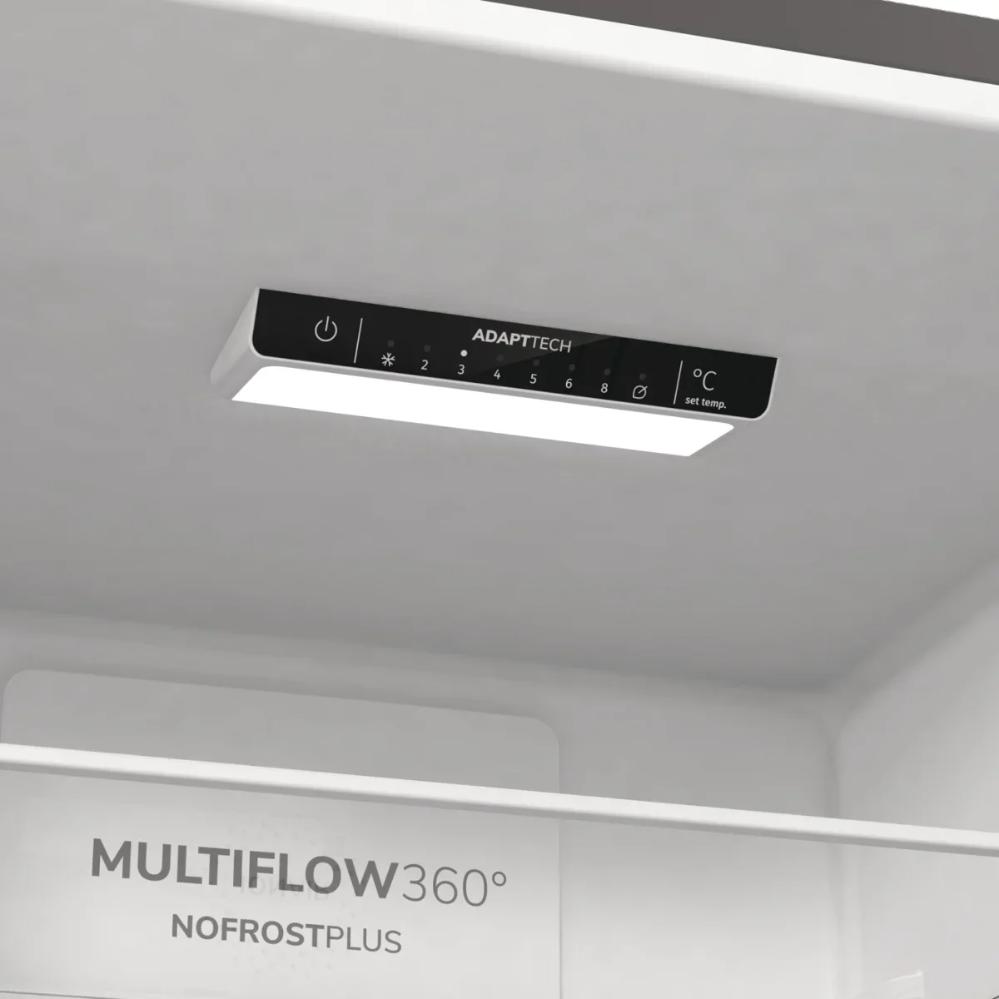 Техника оснащена продуманной электроникой с сенсорным управлением, что делает настройку интуитивной и точной. Автоматическое размораживание в обеих камерах исключает ручную чистку и образование инея. Функция суперзамораживания быстро снижает температуру при загрузке свежих продуктов, что помогает сохранить текстуру и витамины. Вентиляция внутри обеспечивает равномерное распределение холода, а внутреннее освещение упрощает поиск нужных ингредиентов в любое время суток.