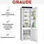 Graude IKG 180.1 — встраиваемая двухкамерная модель с автоматическим оттаиванием холодильного отделения. Класс энергопотребления «A+» гарантирует экономичную эксплуатацию устройства. Для индикации рабочих параметров предусмотрен удобный ЖК-дисплей. Внутреннее оснащение представлено стеклянными полочками, выдерживающими большие нагрузки, а также удобными вместительными ящиками.