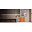 Встраиваемые холодильники монтируются в нишу или колонну. Передняя их часть закрывается декоративным мебельным фасадом и снаружи не отличается от дверцы обычного кухонного шкафа, так что их не нужно подбирать под интерьер помещения. Объем этих холодильников, как правило, несколько меньше, чем у отдельностоящих, так как при встраивании необходимо оставлять свободное пространство для вентиляции. Они отличаются меньшим уровнем шума, а также лучше держат холод и отличаются большей экономичностью из-за дополнительного слоя изоляции. Ассортимент этих холодильников не так велик, как у отдельно стоящих, установка более трудоемкая, а стоимость обычно несколько выше.