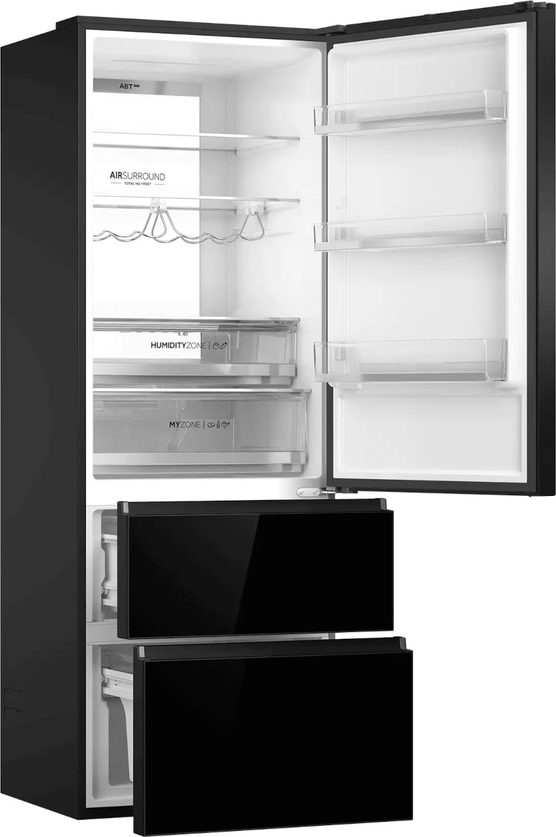 Трехкамерные модели выпускаются в нескольких вариантах. В некоторых случаях в качестве третьей камеры поступает так называемая зона свежести — отделение, где поддерживается температура около 0 градусов. В другом варианте подобные модели имеют морозильную камеру, состоящую из двух выдвижных ящиков.