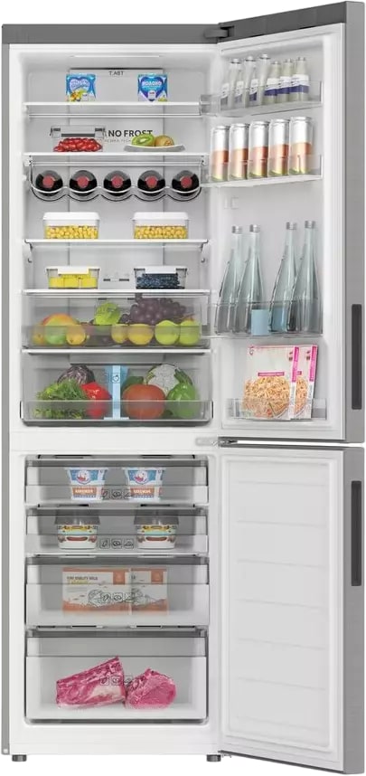 No Frost (Total No Frost, Frost Free): вентилятор обеспечивает циркуляцию охлажденного воздуха, благодаря чему лед не нарастает на стенке, а концентрируется только на скрытом внутри холодильника испарителе. Талая вода собирается в специальной емкости и испаряется. Такой холодильник не нужно размораживать – это экономит время и позволяет не останавливать прибор. Благодаря этим плюсам в современных моделях No Frost – самая распространенная система.