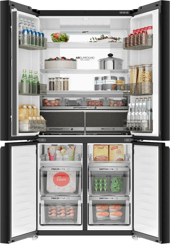 Четырех-, пяти- и шестикамерные модели включают, кроме морозильной и холодильной камер, отдельную зону свежести (иногда состоящую из сухого и влажного отсеков) и специальный отсек для ледогенератора, а в некоторых случаях еще и винное отделение.