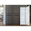 Встраиваемые холодильники монтируются в нишу или колонну. Передняя их часть закрывается декоративным мебельным фасадом и снаружи не отличается от дверцы обычного кухонного шкафа, так что их не нужно подбирать под интерьер помещения. Объем этих холодильников, как правило, несколько меньше, чем у отдельностоящих, так как при встраивании необходимо оставлять свободное пространство для вентиляции. Они отличаются меньшим уровнем шума, а также лучше держат холод и отличаются большей экономичностью из-за дополнительного слоя изоляции. Ассортимент этих холодильников не так велик, как у отдельно стоящих, установка более трудоемкая, а стоимость обычно несколько выше.