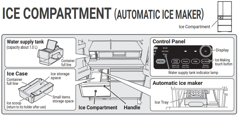 В некоторых моделях есть отдельная панель управления для льдогенератора, подсветка.
