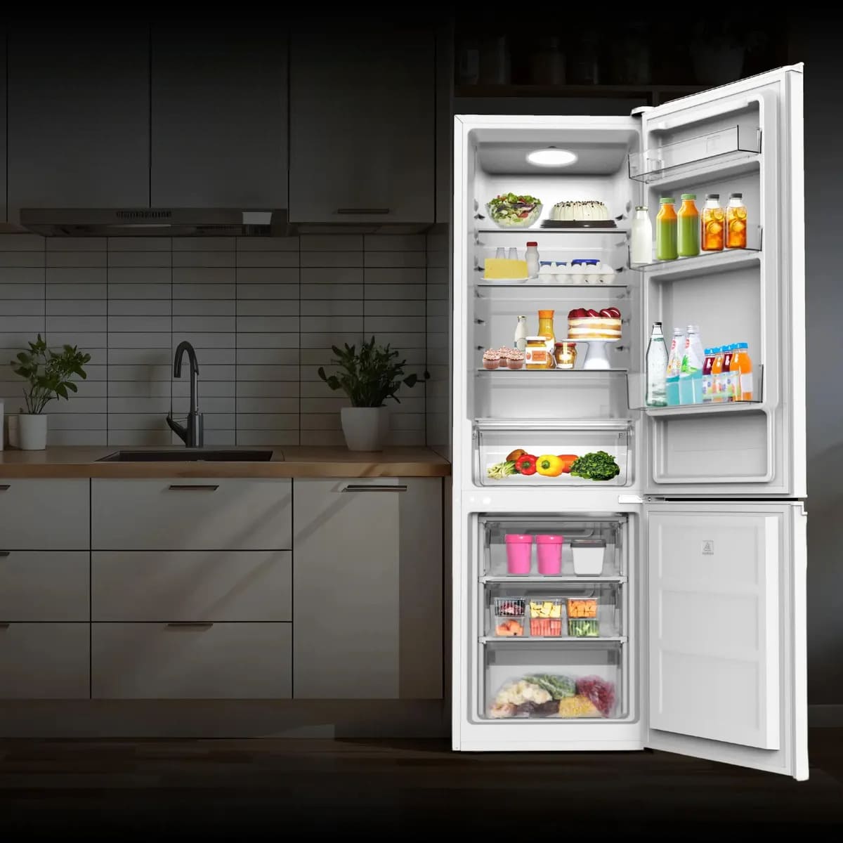Внутреннее освещение холодильной камеры позволяет обеспечить хороший обзор содержимого и быстро найти необходимые продукты. Чем меньше времени будет открыта дверца холодильника, тем лучше будет поддерживаться в камере выбранная температура, следовательно, улучшится и качество хранения продуктов.
