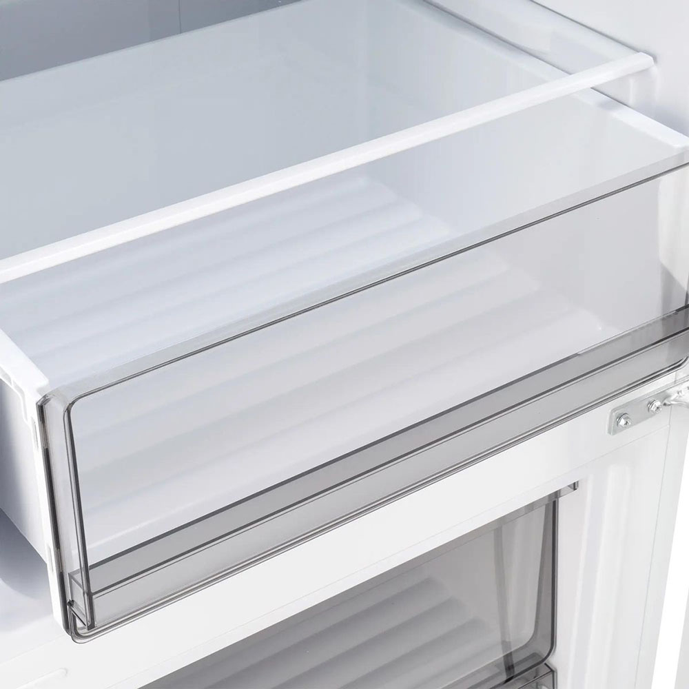 Ящики для продуктов изготавливаются либо целиком из прозрачного пластика, либо часто имеют переднюю прозрачную панель, которая обеспечивает лучший обзор. Полки в большинстве холодильников могут перемещаться по высоте, устанавливаются на специальных направляющих и без труда снимаются для очистки.