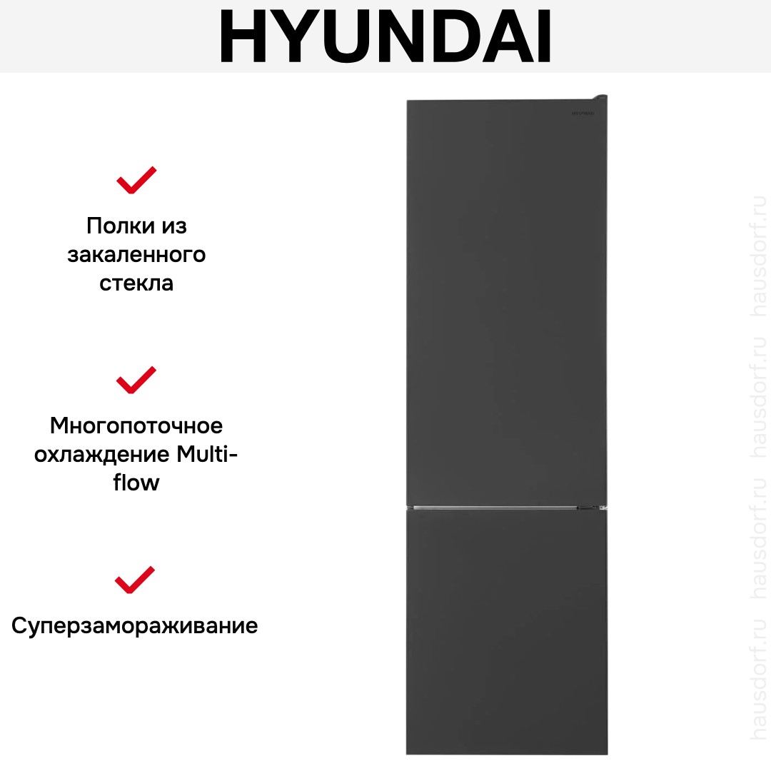 Холодильник Hyundai CC3593FIX. Эта отдельно стоящая модель с морозильной камерой снизу имеет выразительный фронт из нержавеющей стали и аккуратно скрытую ручку. Высота 201 см и ширина 59,5 см делают прибор компактным по отношению к стандартным кухонным нишам, а металл на фасаде устойчив к отпечаткам и легко очищается от загрязнений. Сдержанный дизайн подходит к разным интерьерам, а возможность перевешивания дверей дает свободу при установке в любом помещении.