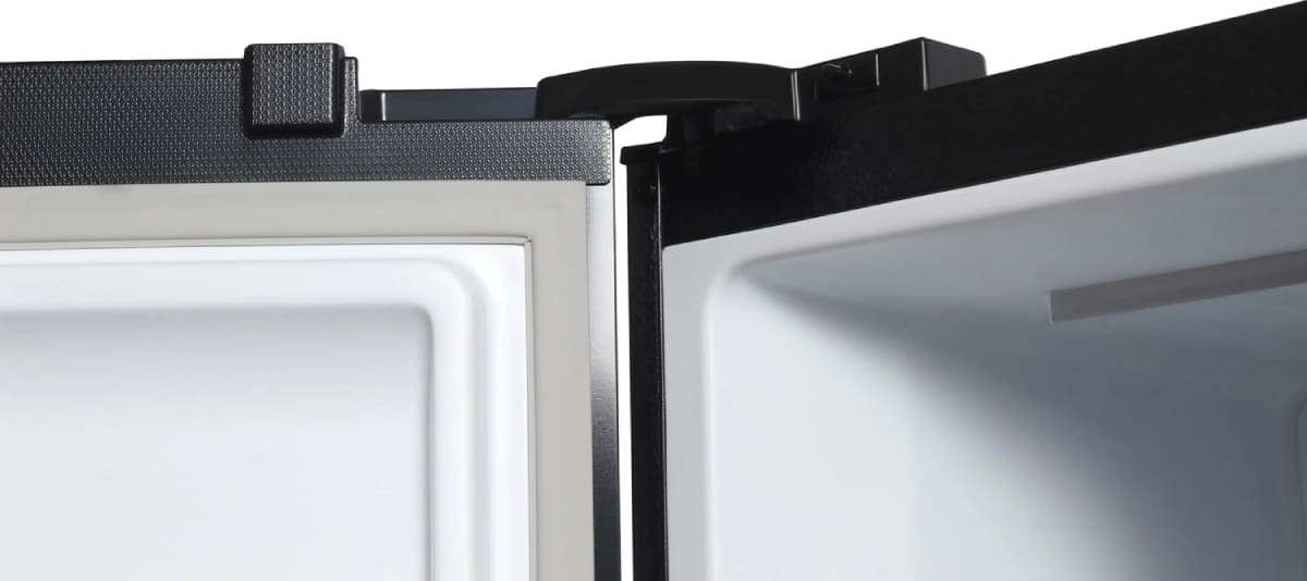 Холодильники с так называемой французской дверью или French Door также имеют распашные двери, но за ними находится не две, а одна камера. Эти двери занимают не всю высоту холодильника, а только ее часть. В нижней части подобных холодильников могут находиться либо еще две распашные двери, либо выдвижные морозильные ящики.