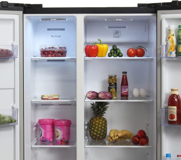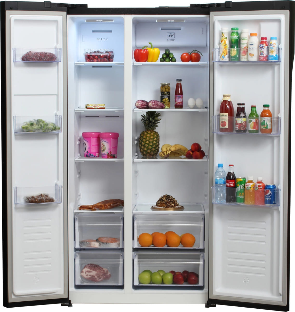 Холодильники Side-by-Side, что в переводе означает «бок-о-бок», — вместительные устройства, в которых холодильная и морозильная камеры располагаются рядом друг с другом. Они предназначаются для хранения значительного запаса продуктов и иногда называются холодильниками с американским типом компоновки, поскольку такие приборы с распашными дверями появились именно в США.