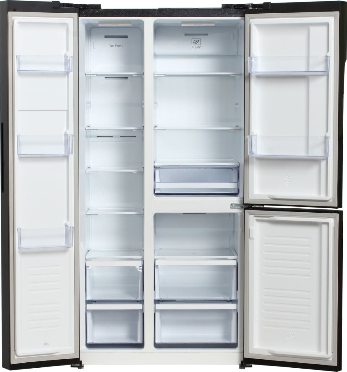 Высота таких холодильников обычно составляет от 175 до 220 см, а ширина — от 80 до 165 см. Как правило, подобные модели оснащены электронной системы управления с дисплеем, позволяющим быстро и наглядно изменять температуру и следить за состоянием прибора. В числе дополнительных функций можно выделить специальные зоны хранения продуктов, например, зону свежести или отделение для хранения вин, усовершенствованные системы циркуляции воздуха для равномерного охлаждения продуктов, возможность длительного сохранения холода при отключении электроэнергии.