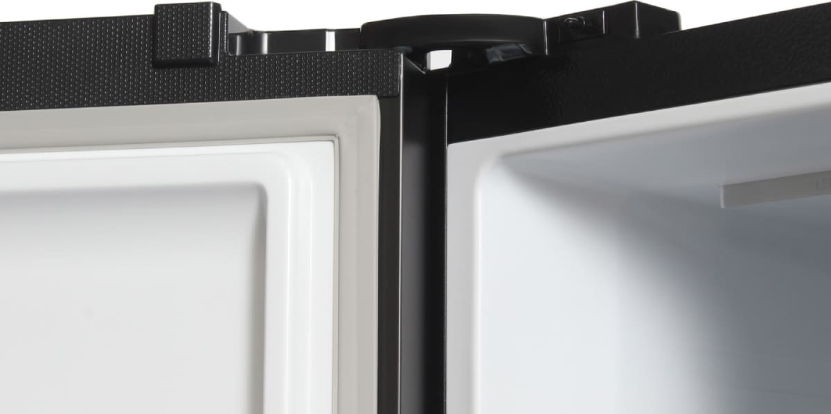 Холодильники с так называемой французской дверью или French Door также имеют распашные двери, но за ними находится не две, а одна камера. Эти двери занимают не всю высоту холодильника, а только ее часть. В нижней части подобных холодильников могут находиться либо еще две распашные двери, либо выдвижные морозильные ящики.