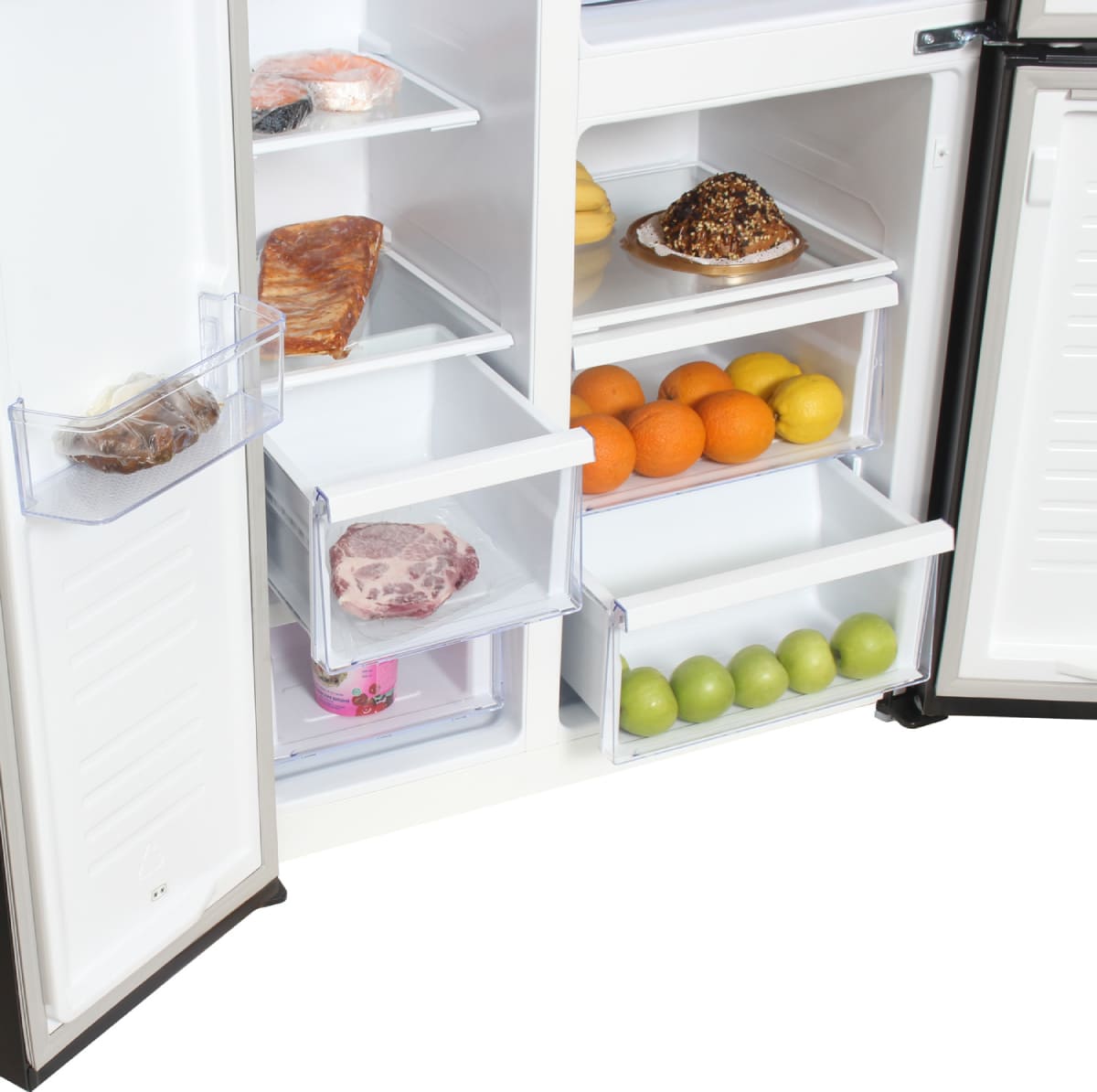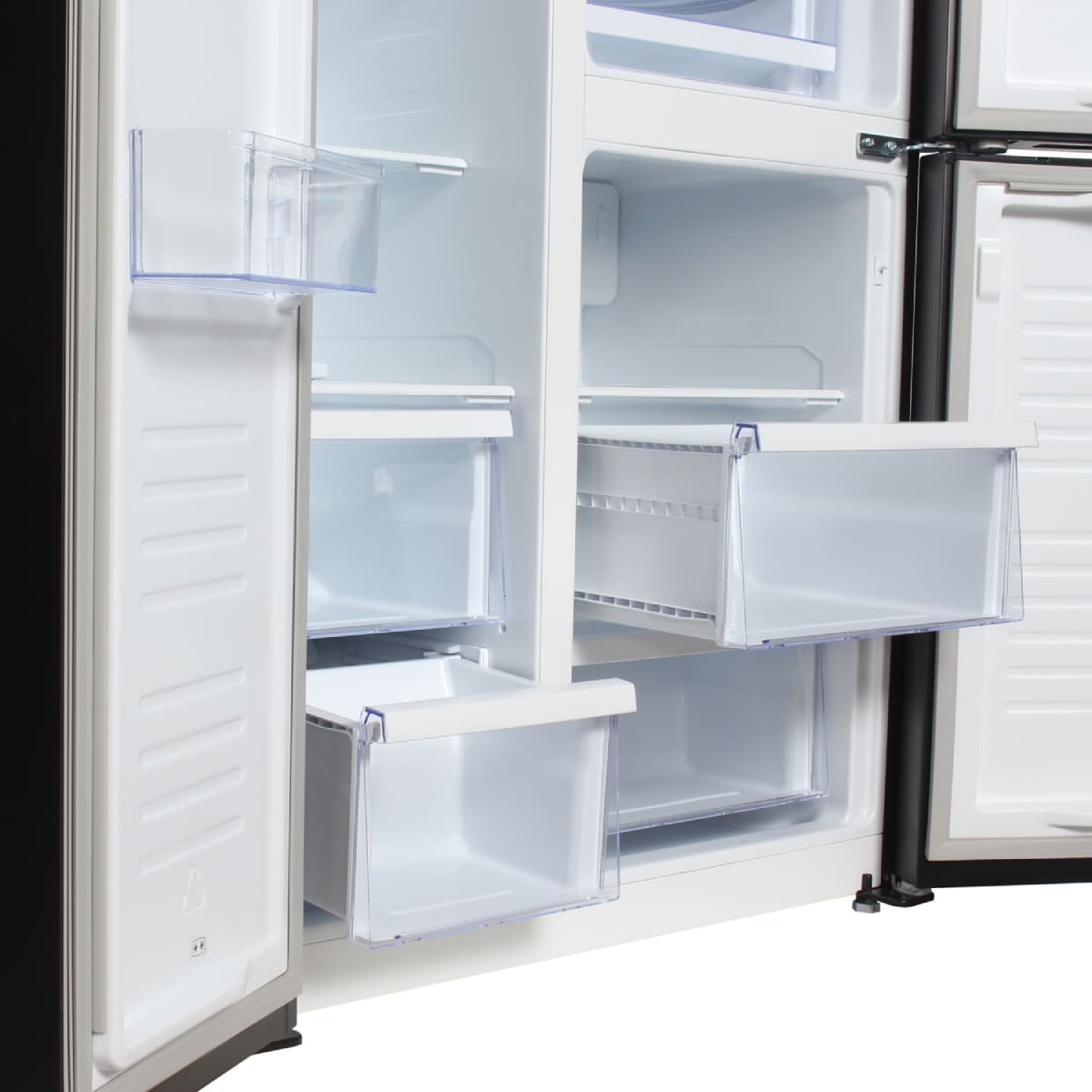 Ящики для продуктов изготавливаются либо целиком из прозрачного пластика, либо часто имеют переднюю прозрачную панель, которая обеспечивает лучший обзор. Полки в большинстве холодильников могут перемещаться по высоте, устанавливаются на специальных направляющих и без труда снимаются для очистки.
