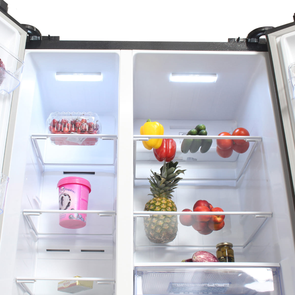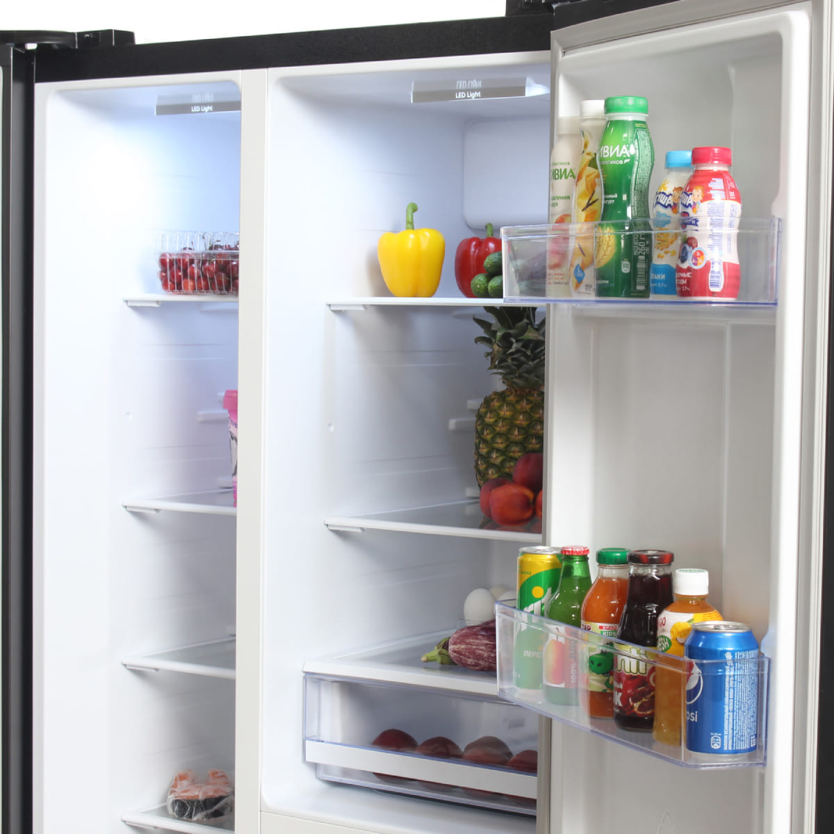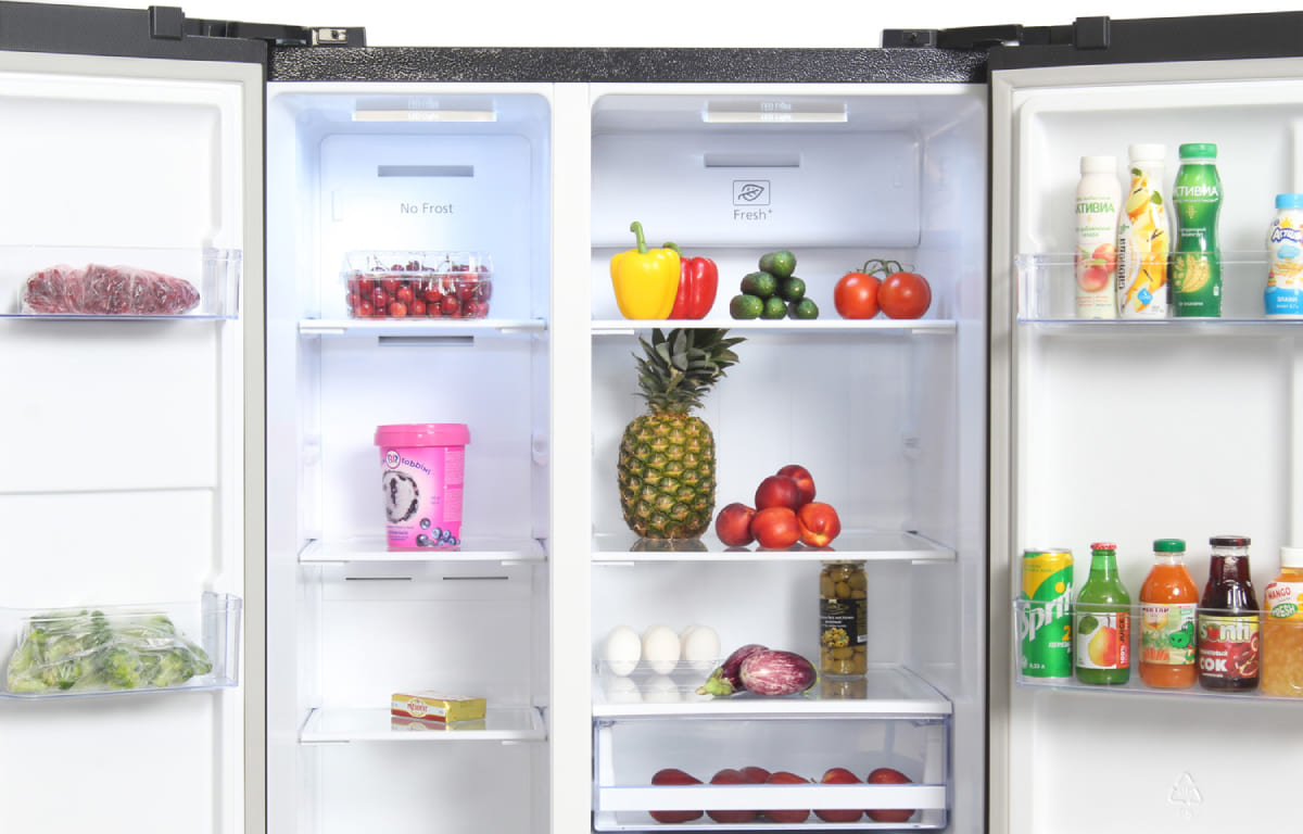 Холодильники Side-by-Side, что в переводе означает «бок-о-бок», — вместительные устройства, в которых холодильная и морозильная камеры располагаются рядом друг с другом. Они предназначаются для хранения значительного запаса продуктов и иногда называются холодильниками с американским типом компоновки, поскольку такие приборы с распашными дверями появились именно в США.