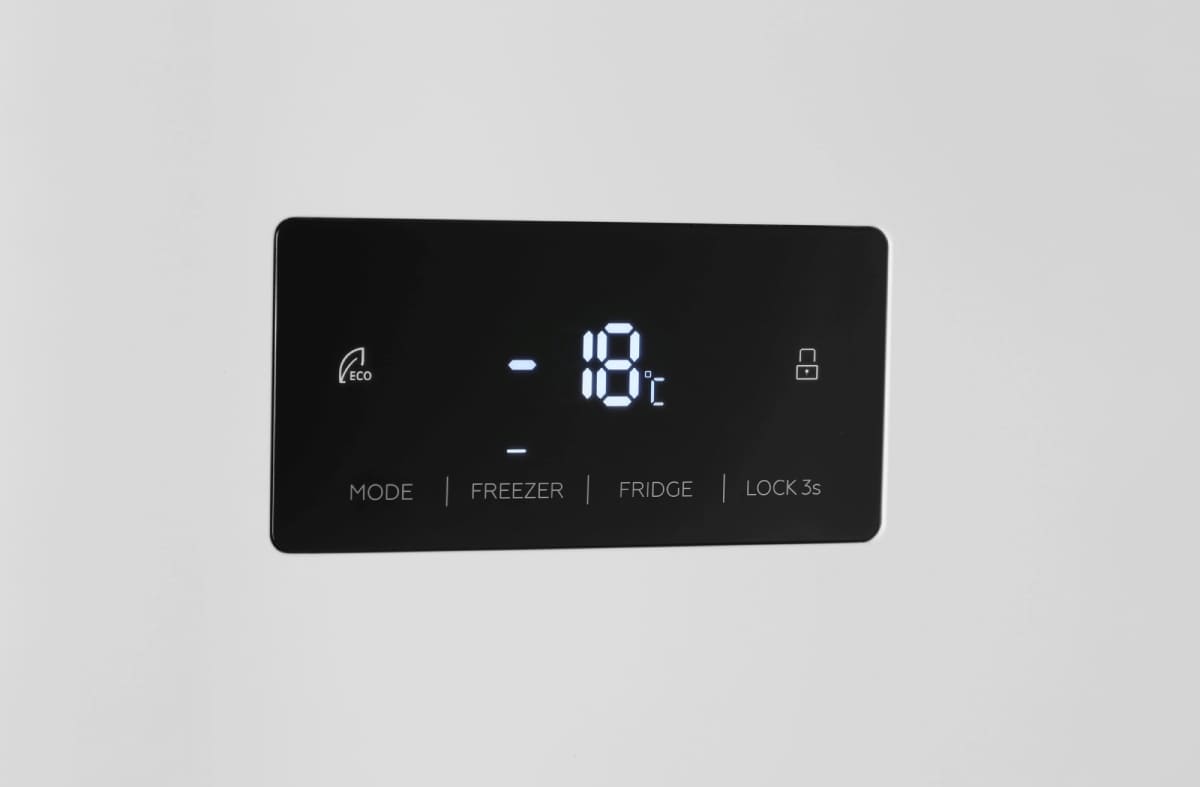 Цифровые дисплеи более простые — на них отображается температура в холодильной и морозильной камерах и выбранный режим — например, суперзамораживание, суперохлаждение, отпускной режим. Сюда же выводятся сообщения об ошибках. Текстовый дисплей дает пользователю больше возможностей и позволяет работать с меню, выбирая в нем те или иные опции.