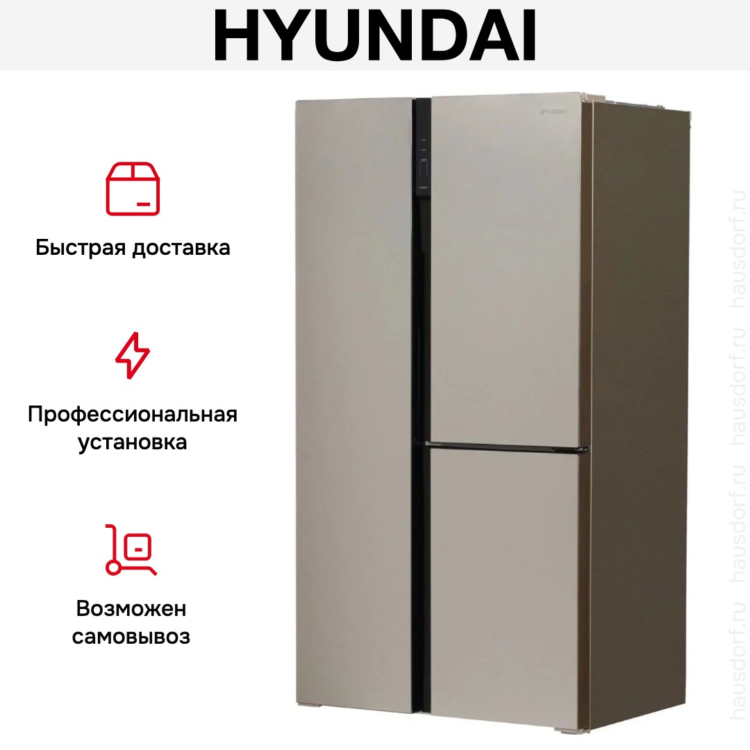 Холодильник Hyundai CS6073FV Шампань — элегантный отдельно стоящий Side-by-Side, который сочетает простор и эстетичность для большой кухни. Его стеклянный фронт в мягком оттенке шампань выглядит стильно и легко впишется в современный интерьер. Встроенные вертикальные ручки создают цельный профиль дверей, а гладкая поверхность проста в уходе и устойчива к царапинам.