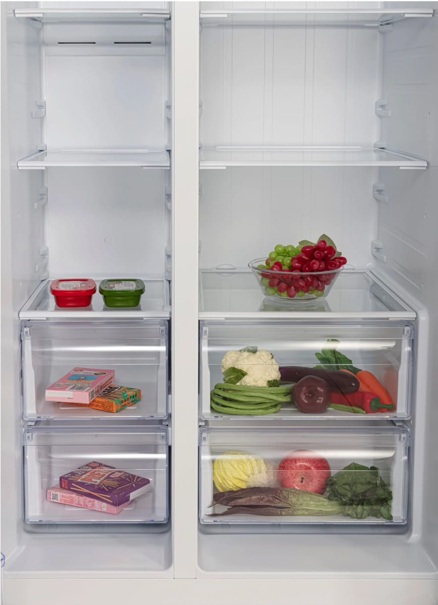 Ящики для овощей и фруктов можно найти в любой холодильной камере, какого размера ни был бы ваш холодильник — от большого устройства Side-by-Side до стандартной двухкамерной модели. В простейшем варианте они представляют собой обычные выдвижные ящики из пластика в нижней части камеры.